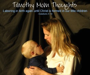 A Timothy Mom is a mother who, like Eunice and Lois, makes it her aim to not only teach her children the scriptures, but also models a life of genuine faith in Christ to them whether her husband does or not. A Timothy Mom labors in prayer, in talking, in listening, in rebuking, in correcting, in coaching, in encouraging, in nurturing, in serving and in modeling faith in Christ for the prize of seeing Christ formed in her own children.