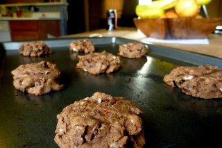 This is a delicious, rustic, salty, chocolaty, not-too-sweet cookie that satisfies my chocolate craving and is just plain yummy!