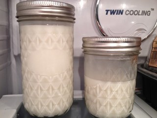 Tonight I did a blind taste test with the kids to see if they would be able to tell the difference between the whole milk we had in the fridge from Walmart and the freshly pasteurized goat’s milk. Surprisingly they both picked the goat’s milk as tasting the best and they both identified it as the goat’s milk. They said they were surprised because they thought it would taste “funny” but it actually tasted creamier and sweeter.