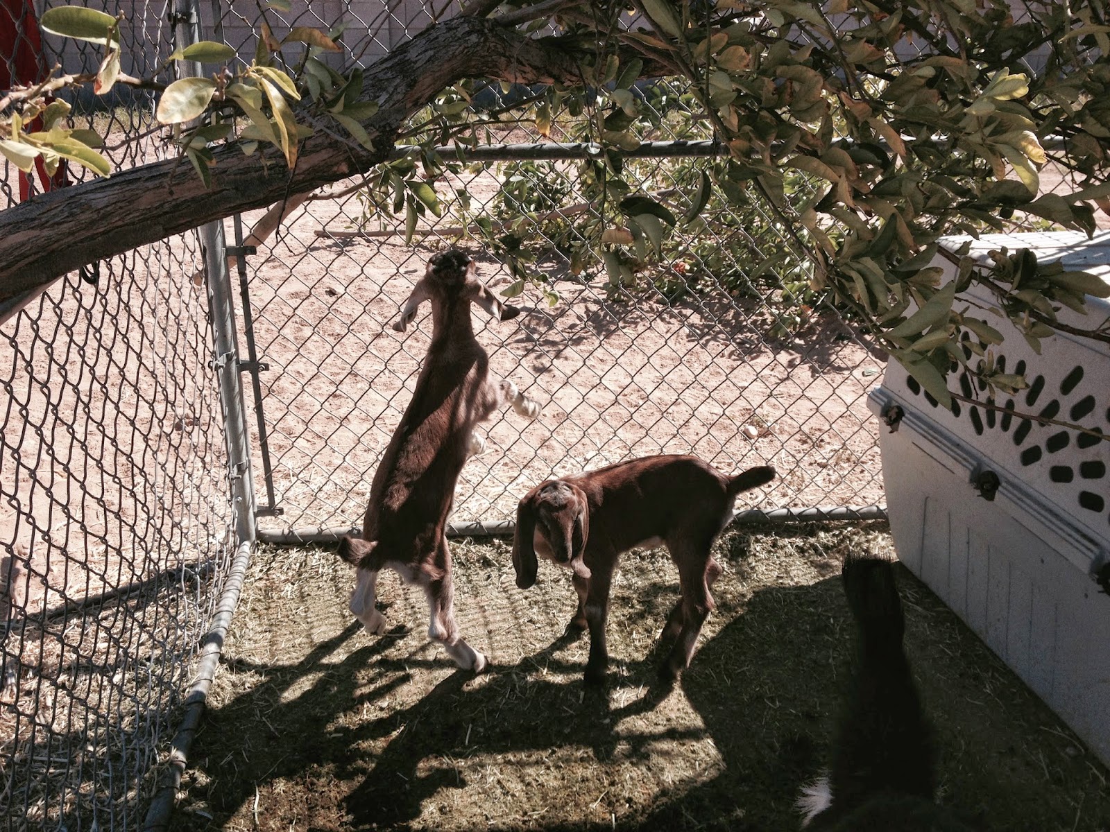 I’ve put my milk stand (which my very nice neighbors are lending to me since they no longer have goats in milk) in our garage. It’s the most dust free area we have on our little “farm” aka dustbowl. (We are in the middle of getting the property laser leveled so that we can put up fencing and irrigate, so for now we have an acre plus of fine dirt blowing around.) Walking Darla to the milk stand is not too much work although she is still a bit reluctant and not used to me handling her on a lead. Getting her up on the milk stand is still slap stick comedy. Picture a six-foot-tall, just-out-of-bed, blonde woman trying to hoist her black, dusty, protesting, approximately-100-pound Nubian onto a milk stand.