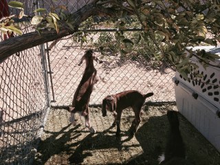 Last night I separated the kids from Darla, putting them in a large dog kennel. You’re supposed to keep them separate for 12 hours and then milk the doe. But my girl doesn’t last for 12 hours. I pen them up at 8 pm and by 5:45 am she’s screaming for relief. Yesterday I milked her first while the kids screamed for breakfast. This morning, I let them nurse for a few minutes (Actually only about a minute… that’s about as long as Darla will let them go for before she seems annoyed and jumps over them. But that’s another subject I’m investigating.) and then took Darla to the milk stand.
