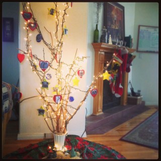 I think it was five years ago now that I started doing a Jesse Tree with my sons. Each year we’ve done it a little differently. This year I gathered some branches my goats had stripped bare of all leaves, stuck them in a large vase and put some lights on them. In years past we’ve pulled an ornament out for each day and placed them on the tree after that day’s reading. But this year I decided to put all the ornaments on the tree from the start and focus more on the reading for each day. Up until this year we’ve used Ann Voskamp’s Jesse Tree readings. But this year, I decided to the family readings from the Reformed Church of America website. They’re short and to the point (which my highly distracted 11 and 9 year need right now) and they set our minds each day on the hope of Christmas.