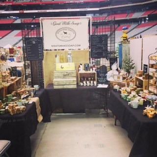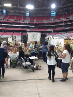 Friday and Saturday were the culmination and fruition of 2+ months of soap-making and 2+ weeks of marketing, packaging, printing and prepping. The Front Porch Pickins Vintage and Handmade Market at the University of Phoenix Stadium in Glendale hosting hundreds of vendors, including my little Goats Make Soap Co. booth, was from 9-7 on Friday and 9-4 on Saturday. Thursday was about 8 hours of unloading and setup and Saturday after 4pm was about 4 hours of packing up and loading.