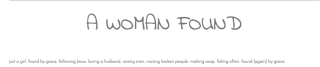 My heart for my home to be my primary field of mission for living out my life as a Christian, desiring my husband and children to join me in that life, has been the driving force behind this blog and the changing of titles usually reflects that heart. Being a homemaker is not just being a mom and wife who doesn’t work outside the home. Being a homemaker is what all mom’s and wives are specially designed and equipped to do. It’s a big topic on which I could blog a lot, and have. But the term homemaker, especially in the Christian circle, has taken on a meaning that can cut a lot of women out of the picture. I don’t want to just be a blessing to stay-at-home-moms (although I want to bless them too!). I want to encourage women of all circumstances to find their identity in Christ and to walk with him through this life. Hence my return to A Woman Found. As far as Sojourning Sheila goes, yeah, that describes me. But I don’t want this blog to just be about me. Nothing wrong with that, I just feel like I might encourage another woman out there more if I don’t just use this blog to write about me and my daily life stuff- I’ll do that too, but I want to share the comforts I have been comforted in by Christ, and the sorrows I share with fellow suffers, and the joys only those who walk with Jesus know. Only women, and men, found by Christ will really get what I talk about here. Cause it just doesn’t make sense without being found by Him. And I want those who may read this blog, who don’t worship Christ, to scratch their heads and hopefully pique their interest. Maybe they would want to be found by Him too.