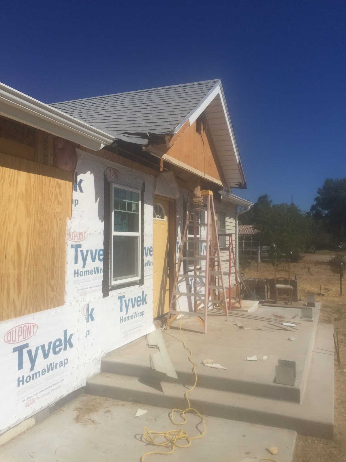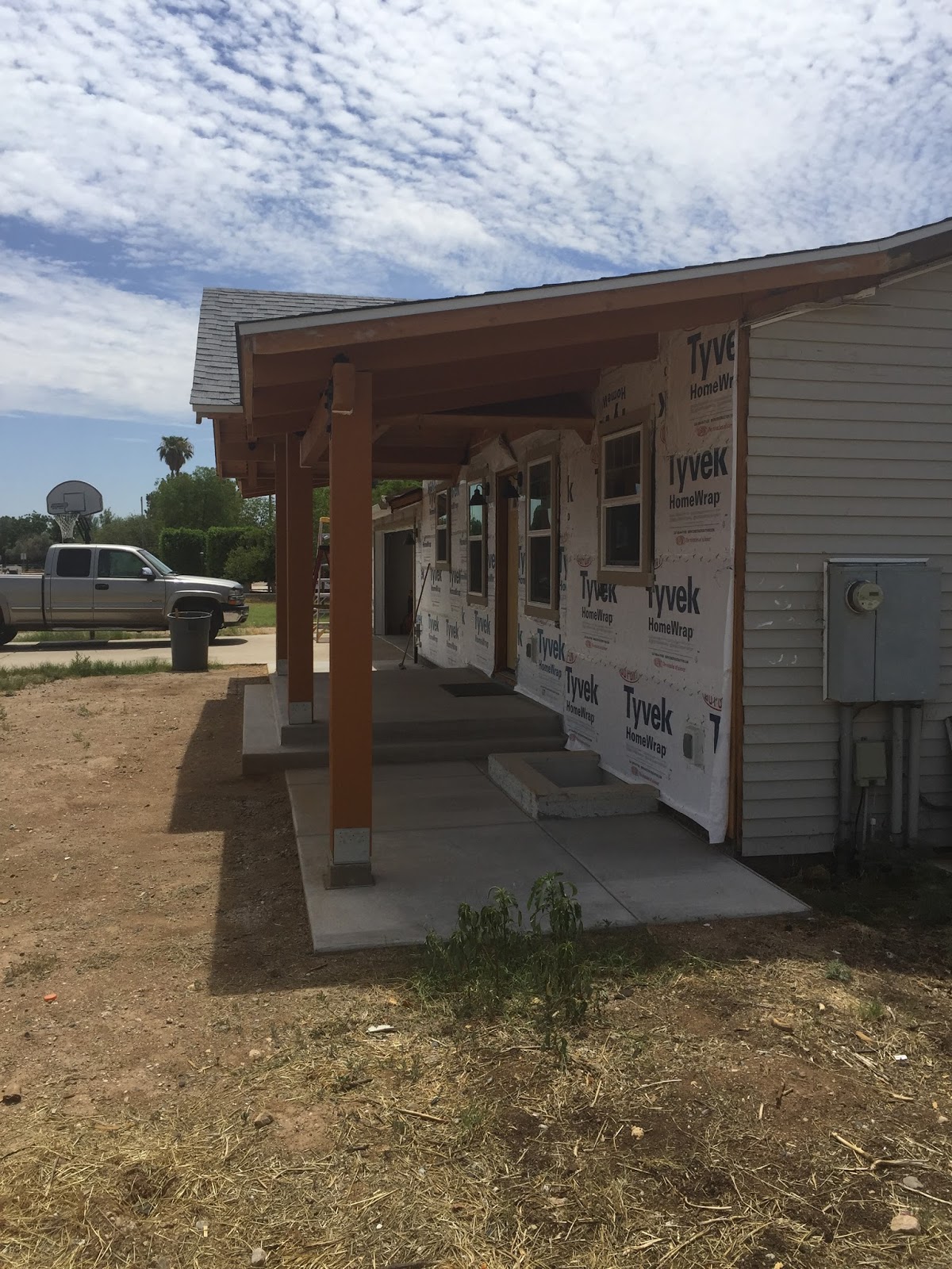 4) The front covered patio project is nearly completed. The actual patio and permit for that project has been reviewed by an inspector from the county and passed inspection. There’s no longer a timeline pressing my husband to get the project done, but there are still endless projects to be done. We both feel relieved just to be done with the patio/permit/inspection process. And it looks really nice. James definitely has a gift for quality craftsmanship. Next, the siding and landscaping of the front yard will happen, but for now, the before and after pics look like this.